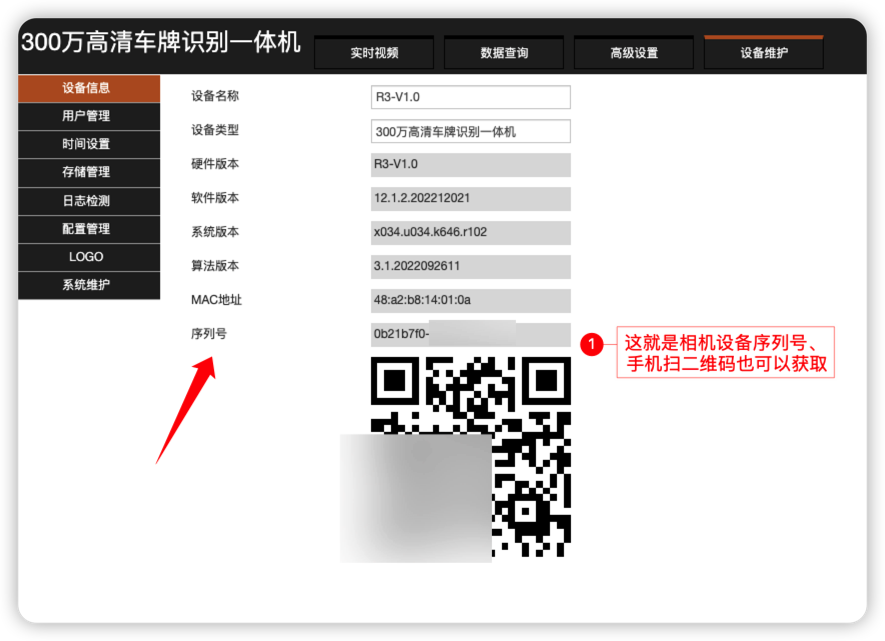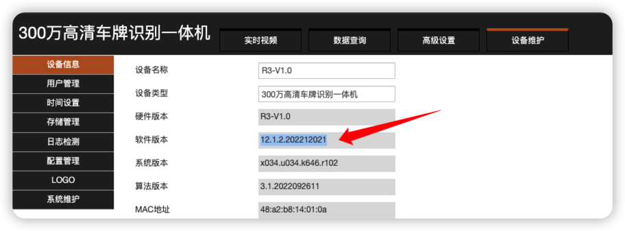 平台臻识R3设备上云流程。1.确认R3相机版本,版本固件不能低于:12.1.2.202212021。如何确认固件信息,如下图
